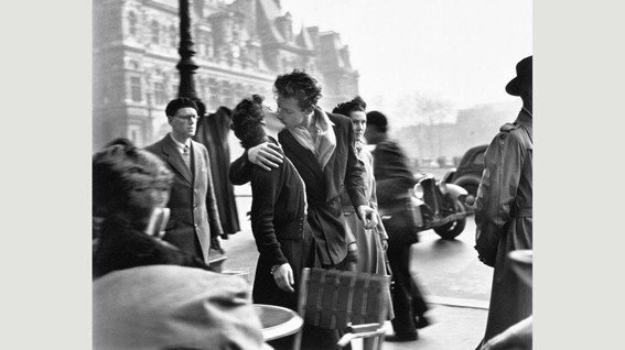 Melhor seria recordar de uma segunda foto, tão repleta de interpretações e iconografias quanto a primeira, ainda que um pouco mais tímida. O beijo representado por Robert Doisneau revela outra visita ao ato, muito menos estrambólica do que a imagem americana, hipérbole para o fim da guerra. Longe desse ambiente, capturada no cotidiano parisiense, a foto de Doisneau pode ajudar a rever a de Eisenstaedt. A doçura com que ela se executa é bastante diferente da primeira imagem aqui apresentada. O movimento não está no primeiro, mas sim no segundo plano; o casal congelado no tempo, parece nem notar o caos urbano que se amontoa ao seu redor. Fico me perguntando como seria se Greta pudesse ter escapado de um bêbado de Nova York e ter se teletransportado para as ruas de Paris, para o anonimato de um beijo que não é acessório ao fato histórico como em 1945, mas sim parte integrante.