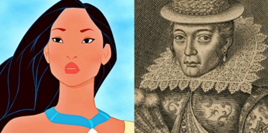 Diferente da trama da animação, o nome da Pocahontas “original” seria Amonute ou Matoaka, nascida na Virgínia, onde na contemporaneidade se chama “Jamestown”. Entretanto, a região, em outros períodos, abrigou povos originários, fontes históricas alegam que ela seria a filha do líder Powhatan.